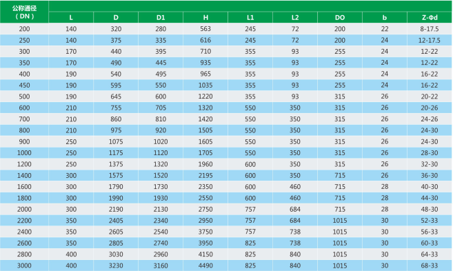 公稱通徑:100mm-3000mm;